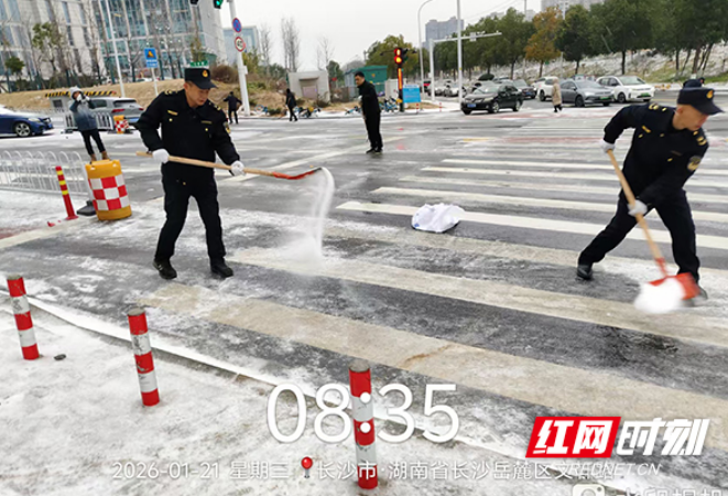 铺麻袋、撒盐、除冰……湖南湘江新区连夜奋战保通畅