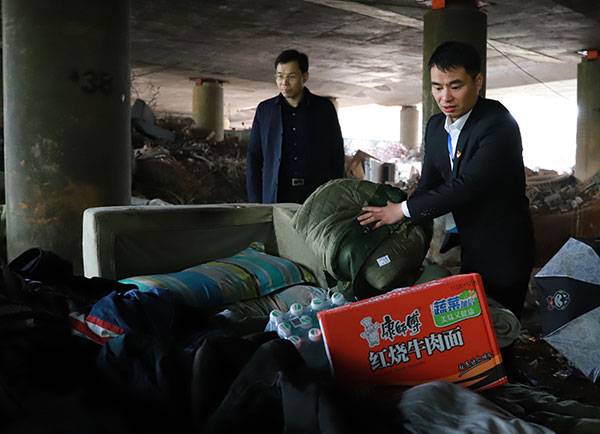 “马上春节了,俗话说有钱没钱,回家过年……”在猴子石大桥北侧引桥下,李思远正对露宿此地的无户籍人员汪某某和贵州籍的王某进行耐心劝导,希望他们到救助站接受救助,或帮助他们返乡过年。