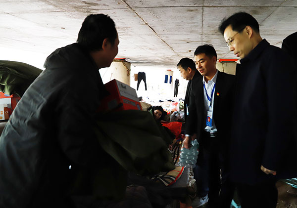岳麓新闻网1月20日讯(记者 何丹 通讯员 谭楚红)为使流浪乞讨人员过上一个温暖的春节,1月20日,岳麓区救助站开展“寒冬送温暖”专项救助行动。区民政局党组书记、局长李思远带领区救助站工作人员、局机关党员志愿服务队走上街头,钻进桥下、地下通道等地,为流浪人员送去御寒物资和食品。