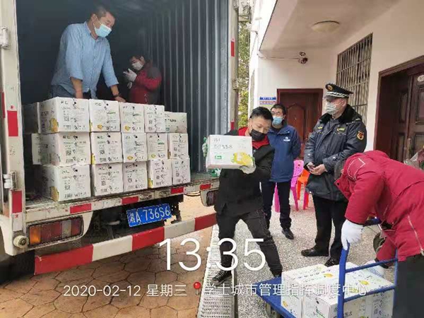 “虽然防疫物资方面我们能力有限,但也想尽自己所能为这场战疫出功出力,这些饮品是对你们日夜坚守的感谢!”2月12日下午,学士街道辖区长沙霞之光贸易有限公司专程为全体街道工作人员送来250件饮品,总价值约合1.5万元,向奋战在防控防疫一线的基层工作人员致敬,并表示将积极配合街道复工复业工作要求,做好疫情严密防控。