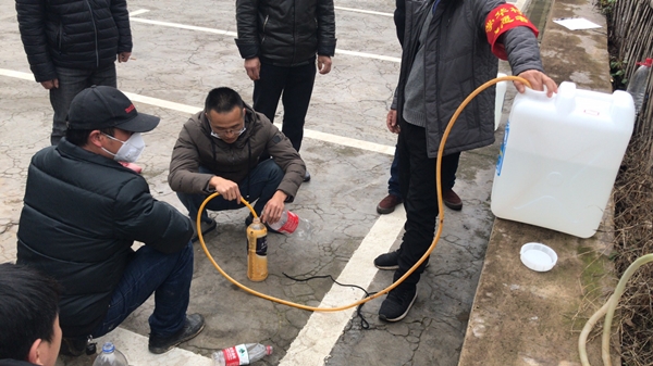学华村龙溪湖度假村董事长邓新华为学华村长丰片七个组捐赠了14桶消毒酒精共计1120斤,由组长主持分发到本组社员家庭。邓新华表示,“面对灾难,作为一名党员,学华村的一份子,为抗击疫情做点贡献是我义不容辞的责任”。