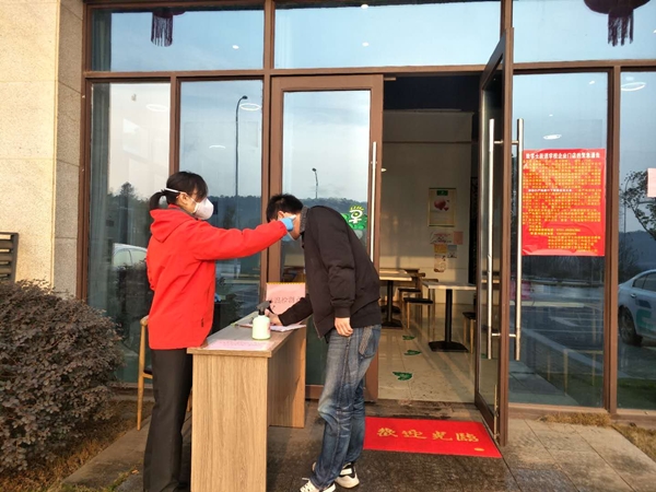居民佩戴口罩、测温登记、喷洒消毒后方能入店