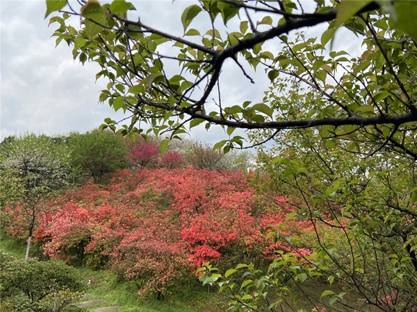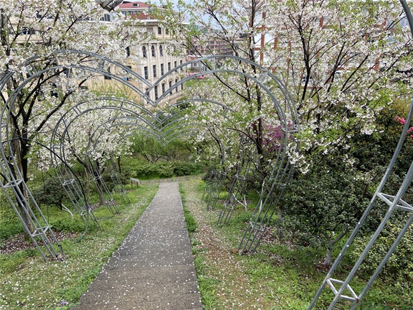 据悉,樱花节将持续到4月15日,在此期间,文化园将免费对外开放。园内樱花、杜鹃、映山红、油菜花、桃花等汇集成一片花海,各种花卉争奇斗艳,相映成趣,走在铺满樱花花瓣的石板路上,仿若置身璀璨梦幻的仙境,也吸引了诸多游客纷纷驻足拍照。