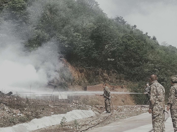演练现场,队员们在统一指挥下,兵分两路,协同作战,运用扑火装备专业装备控制火势,同时启动消防水泵进行扑灭着火点。经过20分钟的奋战,着火点被彻底扑灭,部分留守人员继续看护火场,应急演练取得圆满成功。