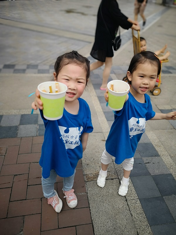 上午9点,20名小志愿者及其家长在天麓社区筹备委员会工作人员的带领下,开展了一场甜蜜的禁烟行动。活动开始前,工作人员向小朋友及家长告知活动事项及安全提示,并通过一系列破冰游戏增进小朋友们之间的感情。随后,每三个家庭为一个小队伍,结伴带着棒棒糖和熄烟小水杯、甜蜜纸条,分散到社区的每个角落,捡起被随意丢弃在地上的烟头,对吸烟者进行礼貌的劝导、宣传戒烟的意义,并递上手中的棒棒糖去交换手中点燃的烟头。一声声稚嫩的话语,一张张可爱的笑脸,让吸烟者主动将香烟放进了纸杯里,整场活动小朋友共发放棒棒糖120余根,甜蜜纸条45张,交换香烟及烟头130根左右。