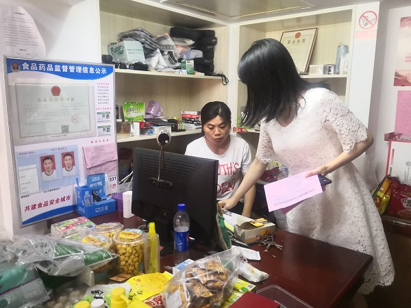 “消杀记录都有吗?”“食品生产经营许可证可以给我们看下吗?”社区工作人员逐户入店进行食品安全检查,仔细查看店面负责人信息,从业人员健康证、食品经营许可证、卫生许可证、营业执照等证件,查看食品药品监督管理信息公示牌的信息公示情况,对食品经营包装及生产和保质期进行抽查,并及时填写做好《长沙市岳麓区食品生产经营单位现场巡查记录表》台账工作。对在检查中发现的问题,要求经营户及时整改,并再次要求经营户从严贯彻复工复产疫情防控要求,严格落实营业场所消毒、餐具消毒。