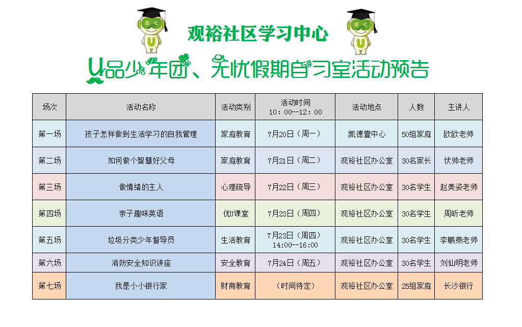 教育子女历来是家长最关心的话题,但如何教育却困扰着许多的家长,7月21日,由观裕社区U品少年团、无忧假期自习室联合打造的第二期公益课程-“如何做个智慧好父母”家庭教育讲座活动,邀请来自自寸草心教育的资深讲师伏帅与家长们面对面共同探讨如何做智慧型父母。