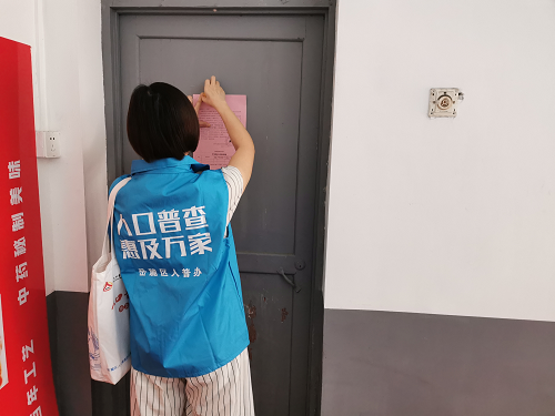 普查员对不在家的居民户张贴《致住户的一封信》