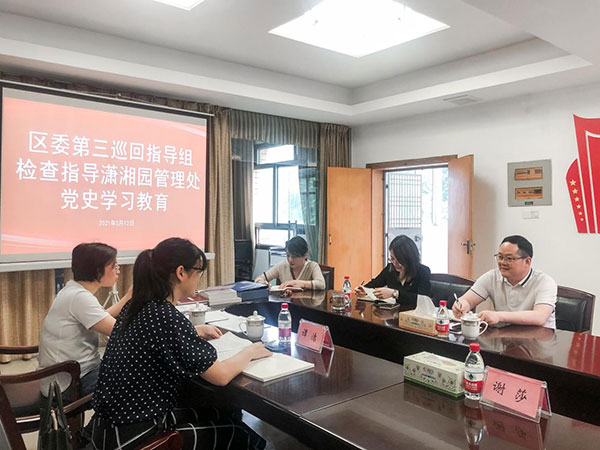 岳麓新闻网5月13日讯(通讯员 朱江)5月12日上午,区委党史学习教育第三巡回指导组副组长谭洁、成员谢莎来到潇湘园管理处检查指导党史学习教育工作。