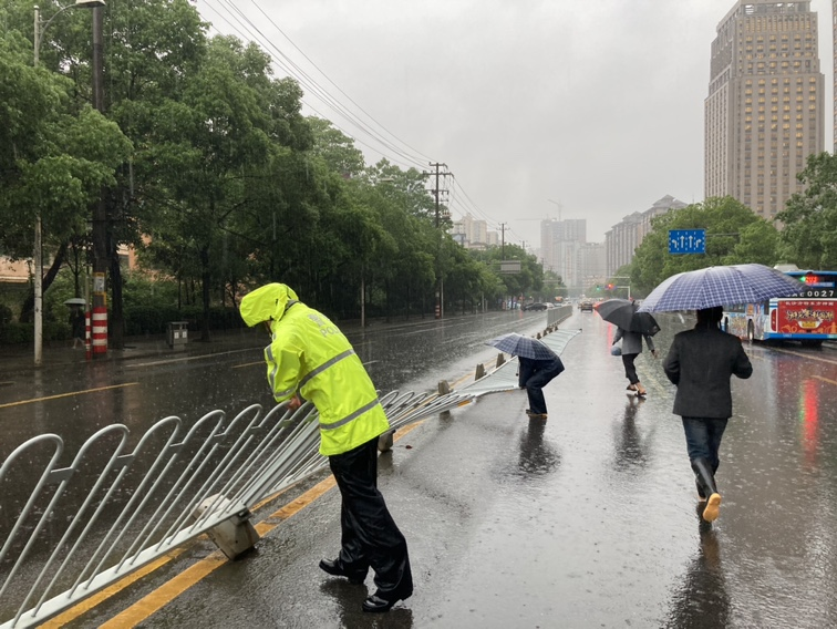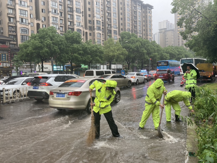 冒雨处理积水