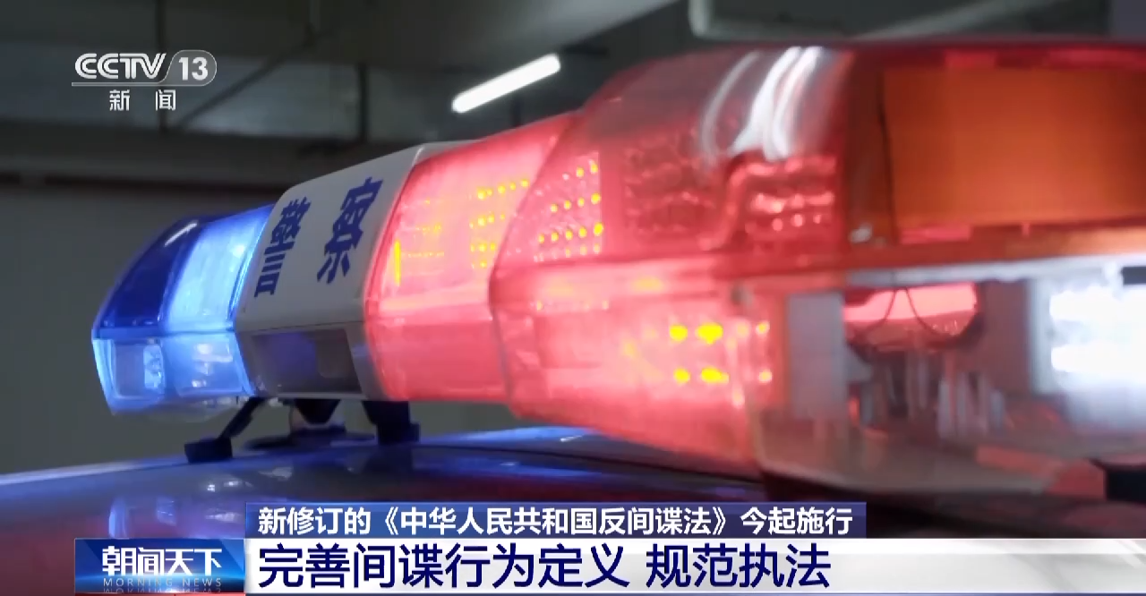 新修订的《中华人民共和国反间谍法》今(1日)起施行。其中完善了间谍行为的定义,在加强反间谍工作的同时,注重对国家安全机关工作人员行使公权力的监督制约。